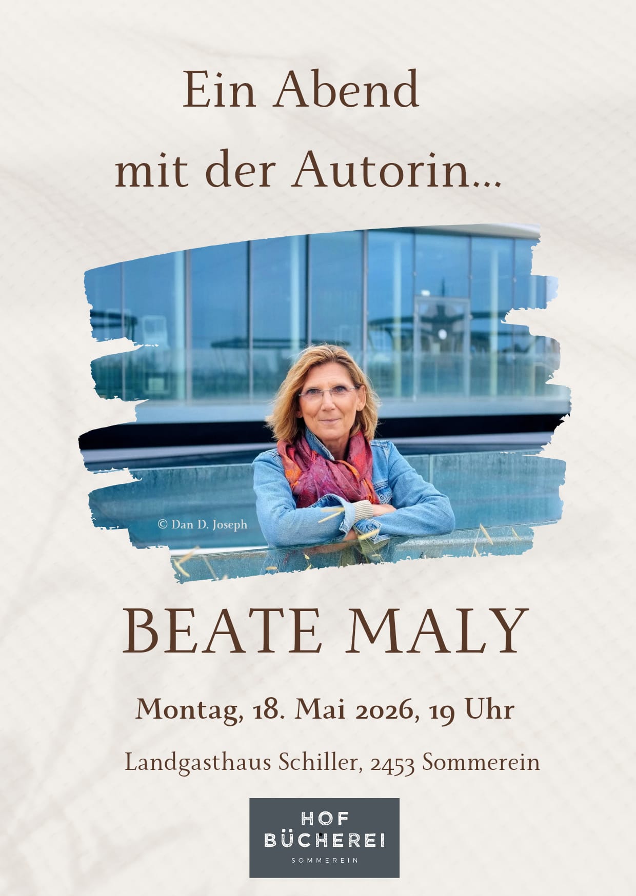 Wir freuen uns, Beate Maly in Sommerein begrüßen zu können – nach der Lesung wird die Autorin ihre Bücher auch signieren.